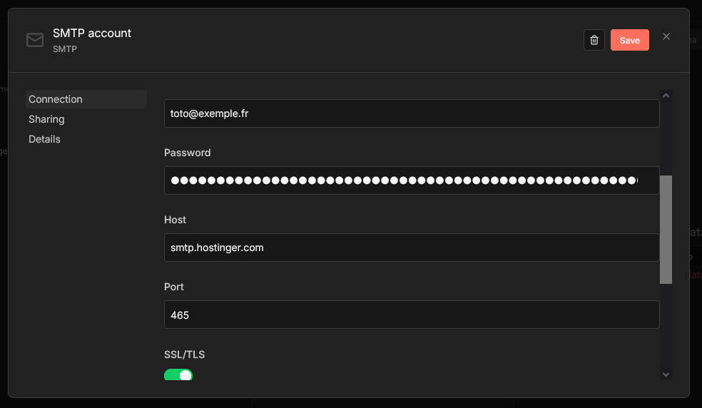 Dans notre cas, le choix s’est porté sur une adresse e-mail associée à un nom de domaine acheté chez Hostinger. Pour la rendre utilisable, il sera nécessaire de définir les credentials, de la même manière que pour GroqCloud.