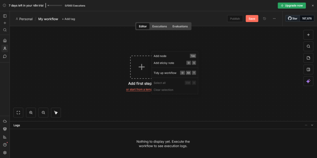 Pour avoir accès à n8n, deux solutions sont possibles: la première est l’abonnement, et la seconde la solution locale. La première est disponible via navigateur en quelques clics sur le site officiel n8n.io , la seconde option (gratuite) est d’installer n8n en local, c’est-à -dire sur votre propre ordinateur. Les deux méthodes ont leurs avantages et inconvénients. La méthode par abonnement rend vos workflow dépendant de la disponibilité des serveurs n8n en plus d’un coût allant de 20 euros (pour la version starter) à 667 euros (pour la version business). La seconde méthode elle, rend vos workflow dépendant de la puissance de calcule de votre machine et dans le cas d’une automatisation en continue, il vous sera impossible d’éteindre votre ordinateur sous peine de stopper l’automatisation. De même, toutes les mises à jour seront à votre charge. Pour installer n8n en local vous pouvez suivre ce tutoriel installation de n8n sur windows ou linux sans docker